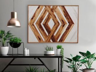 This wood panel is handcrafted using recycled pine tree. Each piece of wood is hand selected to draw out the colorful contrast and beauty of the wood panel.