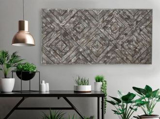 This wood panel is handcrafted using recycled pine tree. Each piece of wood is hand selected to draw out the colorful contrast and beauty of the wood panel.