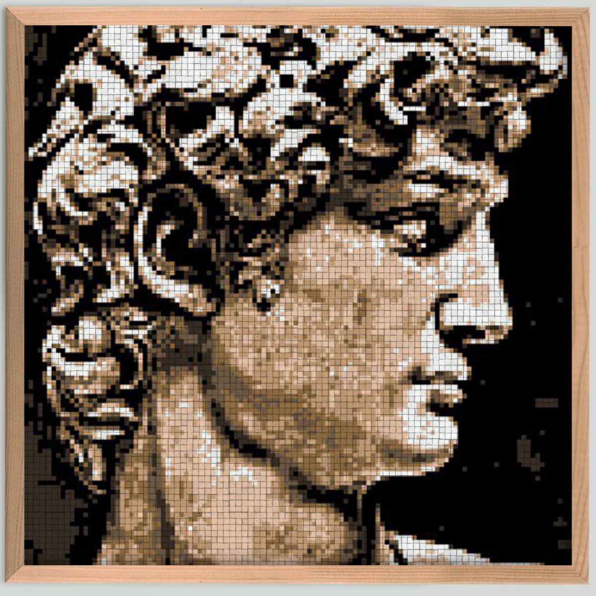 • An oak frame is available as an extra option to enhance the appearance of the assembled wall art mosaics. Align first all parts of the frame and only after screw the frame parts together.