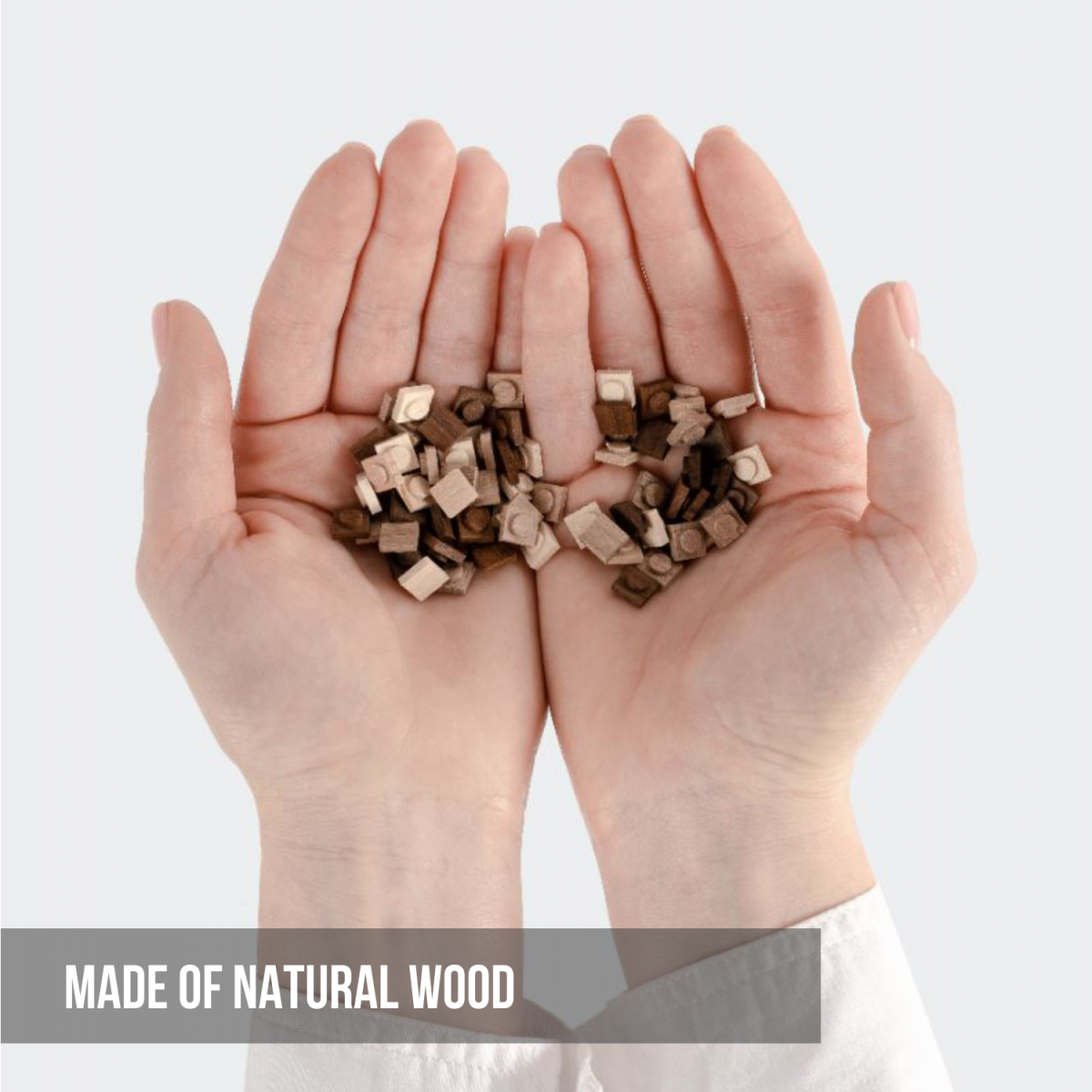 • WooBox Wall Mosaic set is made of natural organic wood! Due to precious carving our wooden mosaics have perfect smooth structure with no gaps or roughness.