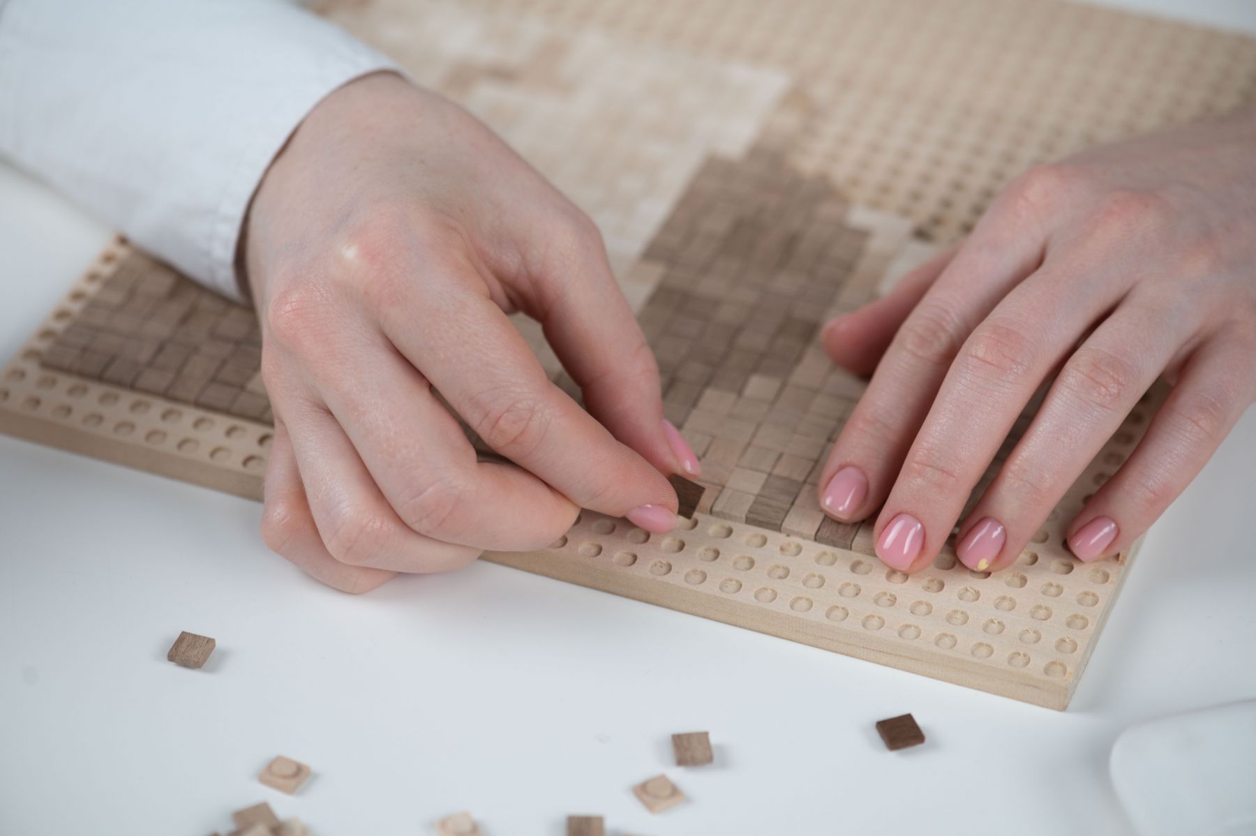 WooBox Photo Art mosaics is a unique Photo Puzzle that allows you to turn your photos into pixel art pictures and assemble them with our wooden mosaics.